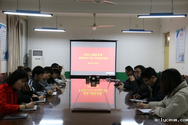 12月13日晚7点,商务工程技术系在系二楼会议室召开新老学生干部工作经验交流会。系党总支书记郭启瑞出席会议并发言。部分辅导员老师、新老两届学生会主席团成员参会,学生科科长王磊主持。